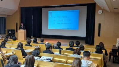 今年度も経済学部長をお迎えして1年生保護者会において学部説明会を実施しました。後藤先生は昨年11月に着任され、今回が初めての来校でしたが、とても気さくな雰囲気で経済学部の特長である、ゼミ活動を重視した少人数制、海外への視野を話され、保護者の方の興味をひくお話を展開されていました。