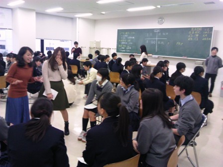 中央大学6学部、他大学あわせて31名の大学生が参加して行われました。そこでは大学生からの問いかけに対して、質問を発し、対話を重ねて自らの進路探求につなげるという方法が採られています。これは、今声高に導入が叫ばれているアクティブ・ラーニングでもあります。この形式を始めた10年ほど前は、教員側が学生募集を行い、進行などを企画運営していましたが、5年ほど前からは、白灯会(本校の同窓会)学生役員が主体となって企画し運営がなされるようになりました。